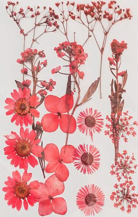 Poppy Crafts Dried Flower Kit #15 - 16pcs. This deep pink Dried Flower Kit is a must for adding a detailed floral addition to card crafting and scrapbook pages, as well as any mixed media or decor projects. Within the Dried Flower Kit includes a variety of both floral and supporting foliage, making 16 pieces in total.
