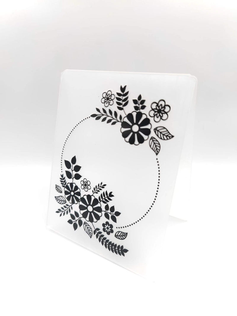 Poppy Crafts Embossing Folder #228 - 4.5"x6" - Pretty Floral Frame. Create amazing paper craft projects with this beautiful embossing folder design! These are a great idea for all your greeting cards, place cards, scrapbooking and so much more. Compatible with most die-cutting machines (sold separately). Size: 4.5"x 6" (12cm x 15cm)