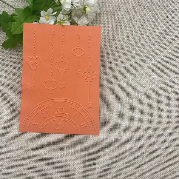 Poppy Crafts Embossing Folder #295 - Chained Vintage Keys. Create amazing papercraft projects with this beautiful embossing folder design! These are a great idea for all your greeting cards, place cards, scrapbooking and so much more. Compatible with most die-cutting machines (sold separately). Size: 4"x 6" (10.5cm x 14.5cm).