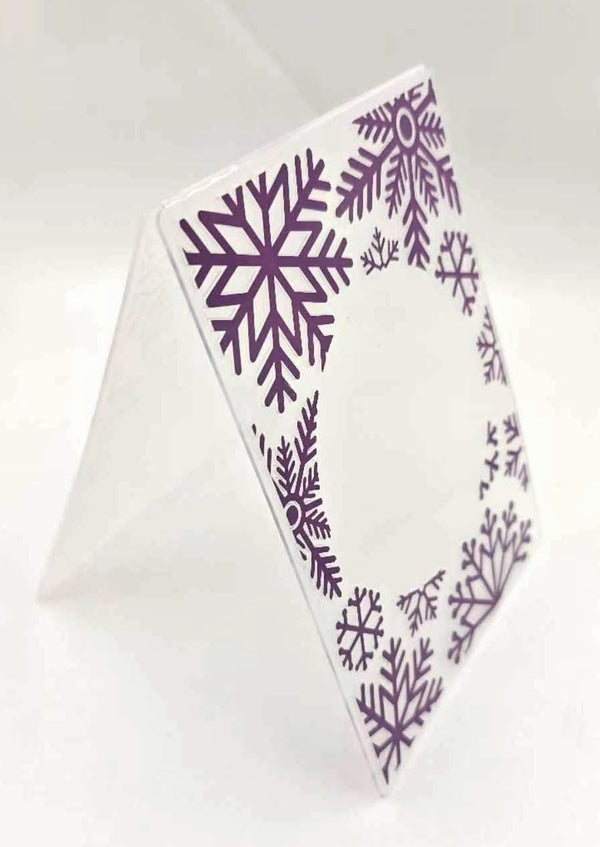 Poppy Crafts Embossing Folder #395 - Snowflake Frame. Create amazing papercraft projects with this beautiful embossing folder design! These are a great idea for all your greeting cards, place cards, scrapbooking and so much more. Compatible with most die-cutting machines (sold separately). Size: 5.25"x 7.25" (13.2cm x 18.4cm).