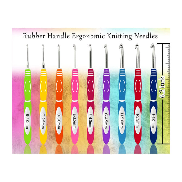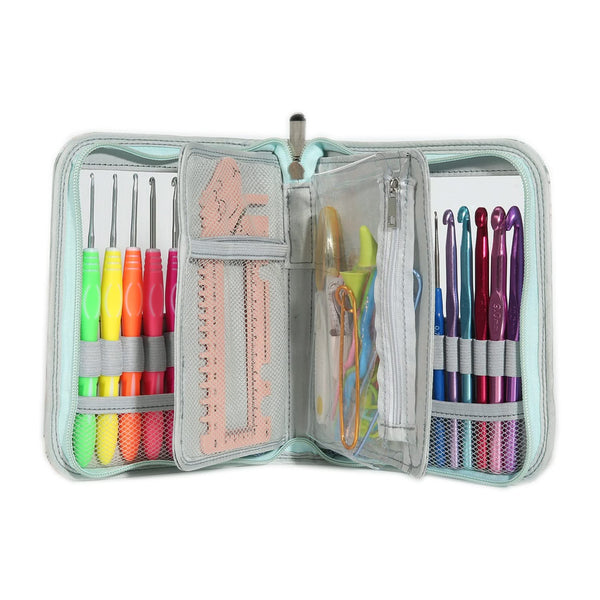Poppy Crafts Premium Crochet Set #2. This portable kit makes it easy to carry and will not take up too much space. The soft grip handles are marked with numbers and a Letter, and the metal hooks are marked with millimetres so you’ll never be confused. Soft Handle Crochet Hooks Sizes: 2.0mm, 2.5mm, 3.0mm, 3.5mm, 4.0mm, 4.5mm, 5.0mm, 5.5mm, 6.0mm. Metal Crochet Hook Sizes: 6.5mm, 7mm, 8mm, 9mm, 10mm. Small Plastic Handled Crochet Hook Sizes: 0.6mm, 0.75mm, 0.9mm, 1.1mm, 1.2mm, 1.5mm, 1.6mm, 1.75mm. Package Includes: 22x Crochet Hooks, 20 x Stitch Markers, 2 x Stitch Holders, 4x Point Protectors, 6x Plastic Sewing Needles, 1x Sheep Shaped Knitting Needle & Crochet Hook Gauge, 3x Bent Cables Needles, 1 x Thread Snips, 1x Soft Measuring Tape and 1 x 15cm x 20cm Floral Zip up Storage Case.