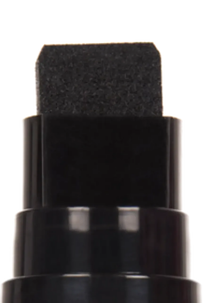 Uni-Ball POSCA Broad Tip Paint Marker Pen PC-17K - Black. The Uni-Ball Posca Pen features a broad 15mm tip loaded with highly pigmented, lightfast ink. This water-based ink is quick-drying, waterproof, and flows smoothly, allowing for easy writing on almost any surface. The ink is permanent on porous surfaces but can be removed from smooth surfaces like glass, metal, or plastic. Despite its dense and vibrant colour, it does not bleed through paper.