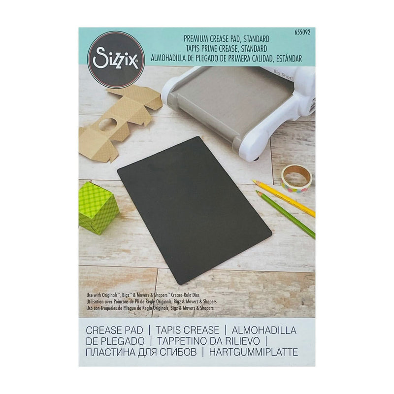 Sizzix Premium Crease Pad Standard 8.875 inch X 6.25 inch X.125 inch. This Premium Crease Pad was specially designed for die-cutting with steel-rule dies containing crease rule. Constructed of high-quality polyurethane plastic, this Crease Pad helps create subtle fold lines for easy to assemble cards, envelopes, bags, boxes and pockets. Simply sandwich the die and material to be cut between one Crease Pad and one Cutting Pad and roll through the machine.