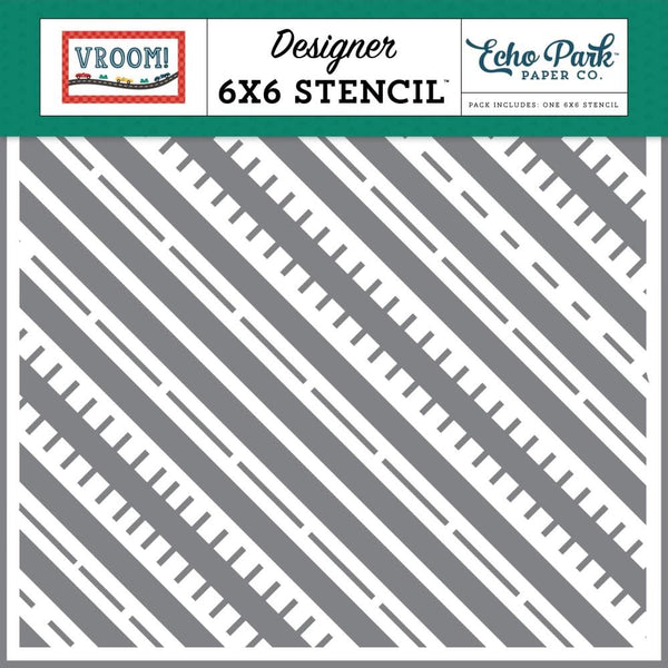 Echo Park Vroom! Stencil 6"X6" Racing Road Tracks - Stencils are perfect for using on mixed media, card making, scrapbooking, textile art and so much more. Use them together or on their own. They are made from durable mylar and can be used with paint, ink, ink pads, chalk, mica mists and more. They are a great addition to your die cutting embossing machine. Stencils can also be used to dry emboss for a more delicate effect. This package contains 6x6 inch stencil.