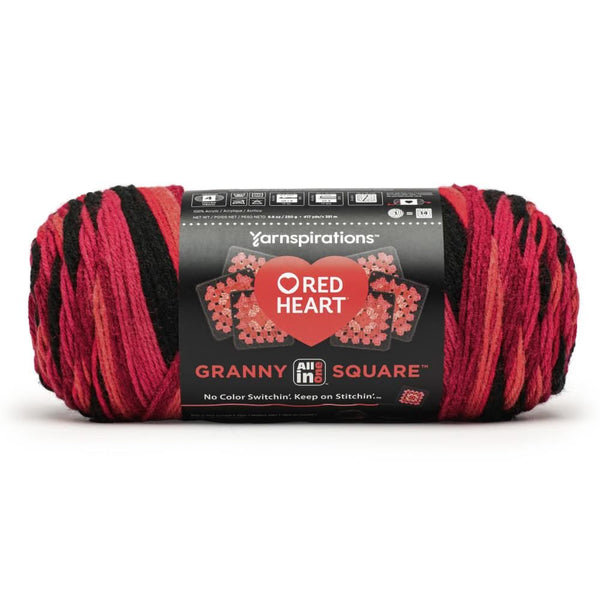 Craft stunning five-colour granny squares without changing yarns with Red Heart All in One Granny Square Yarn—Ruby Red. This self-striping acrylic yarn is specially engineered to create vibrant, colour-coordinated granny squares using just one skein—no need to carry or cut multiple yarn balls. Whether you're a beginner or seasoned crocheter, this easy-to-use, colour-changing yarn simplifies your projects and saves time.