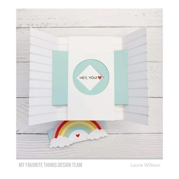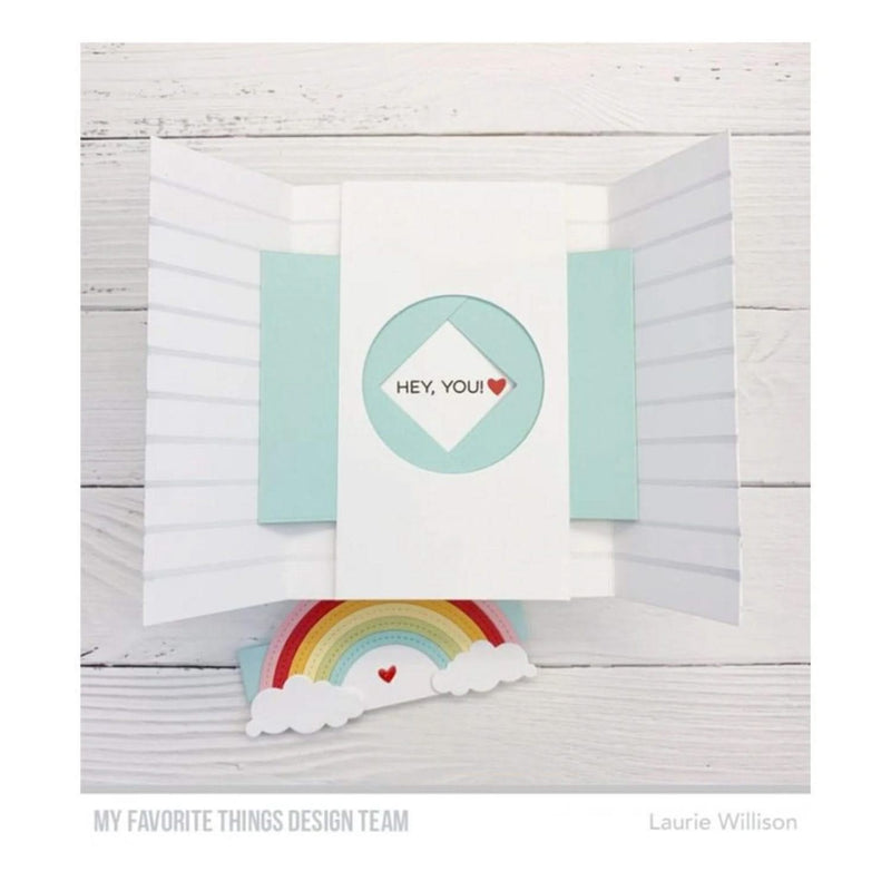 My Favorite Things - Shutter Card Components Die-namics - Die set - Add a surprise element to your cards with ease thanks to the simple assembly required by the Shutter Card Components Die-namics. Simply cut the fishtail element twice, adhere the folded edge of each to either side of a gate-fold card, interweave the end of the fishtail elements, and add a centre panel with the included circle aperture die cut from it to create a surprise reveal when the card is opened. Conceal a greeting or image within to customise the look for your recipient. The Shutter Card Components Die-namics includes: Circle 2 3/8inch - Fishtail element 3 1/2inch x 3 11/16inch .
