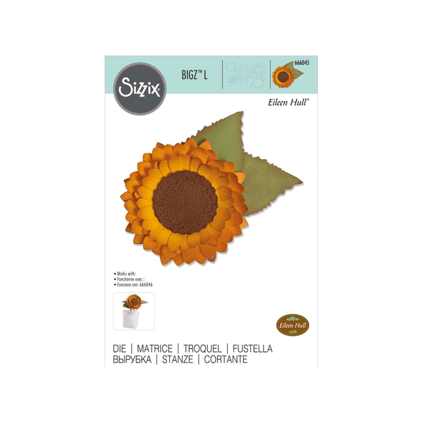 Sizzix Bigz Large Dies By Eileen Hull - Sunflower. A Bigz die cleanly cuts thick materials including cardstock, chipboard, fabric, foam, magnets, leather, metallic foils, paper and much more! Its wider size offers you more design options. For use with the BIGkick, Big Shot, and Vagabond machines (sold separately). Largest size: 9.2cm x 9.2cm Smallest size: 4.7cm x 4.7cm
