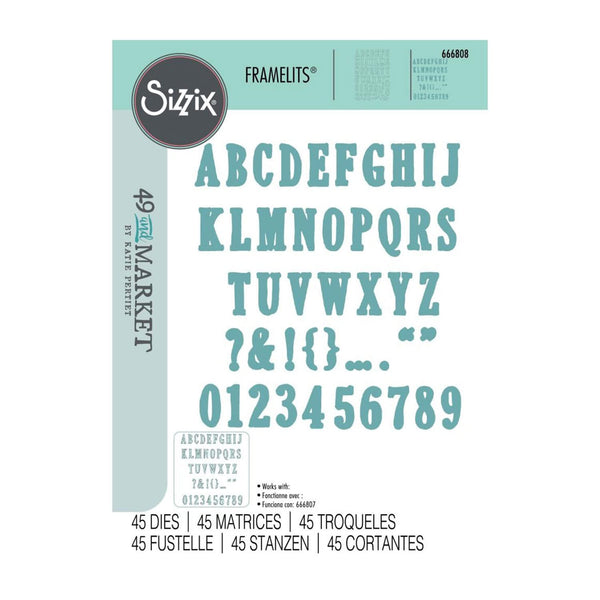 Sizzix Framelits Die Set By 49 And Market - Fine Line Alpha 02. Elevate your creative makes with the Sizzix Framelits 45PK Die Set – Fine Line Alpha 02 by 49 and Market. Whether you’re a seasoned crafter or just starting, this set is essential for adding a unique flair to your projects. This set of alphabet letters, symbols and numbers will help you personalise your creations effortlessly and make every message special! Works with Sizzix A5 Clear Stamps w/Framelits Dies By 49 And Market - Fine Line Alpha 01 (666807, sold separately). These dies are compatible with most die-cutting machines (sold separately). Approximate Design Size: 3/4” x 1” - 3/8” x 3/8” ( 1.91cm x 2.54cm - 0.95cm x 0.95cm).