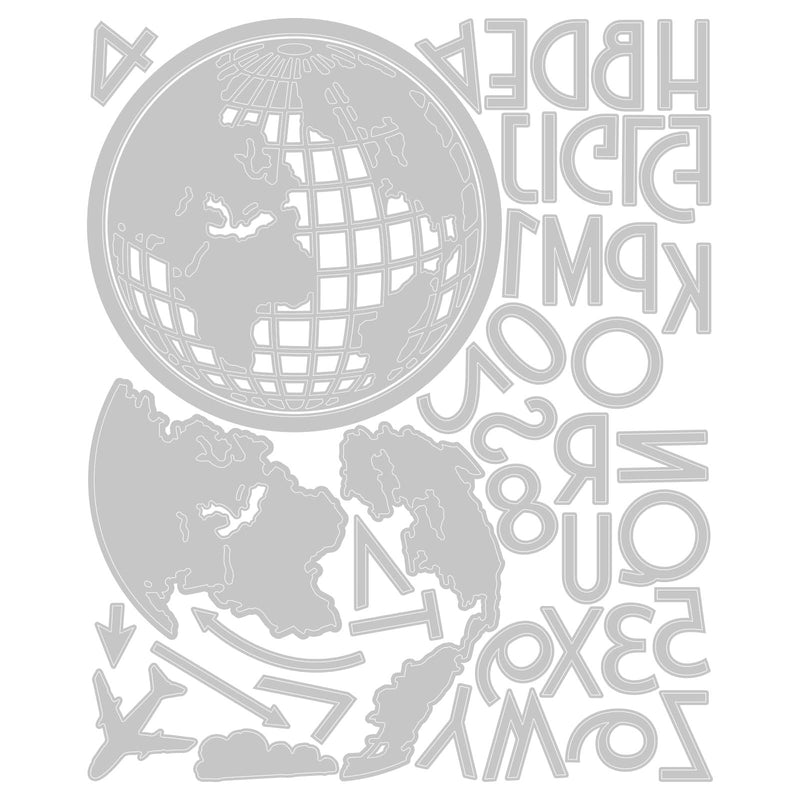 Sizzix Thinlits Dies By Tim Holtz 45/Pkg - Vault World Travel. Travel the globe with this Vault World Travel die from Tim Holtz®. This huge 45-pack die set includes a globe shape, an aeroplane and bonus alphabet letters and numbers so there is plenty of versatility to use these dies in many of your creative makes, from cards to gift wraps, memory books and home decor. These wafer-thin chemically-etched die sets are designed to cut, emboss or stencil a single sheet of cardstock, paper, metallic foil or vellum. They are simple to use, compact and portable for cutting at home or on the go. Use them for enhanced intricacy and to add a special touch of inspiration to all your projects. The Thinlits dies in this set are compatible with most die-cutting machines (sold separately). Includes 45 dies. Approximate Die-Cut Sizes: 3"x 3" - 1/4"x 1/2" (7.62cm x 7.62cm - 0.64cm x 1.27cm).