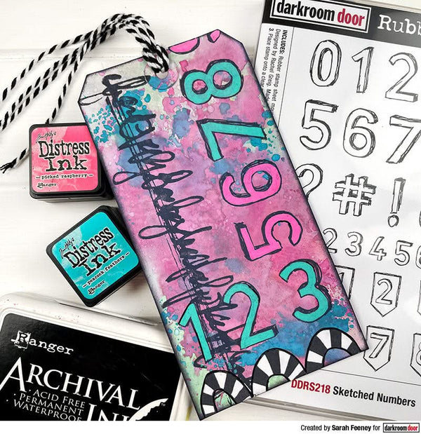 Darkroom Door Cling Stamps 7.3"X5.1" - Sketched Numbers - These detailed stamps are the perfect way to add fun images to your cards, scrapbook pages and more! Use with any clear acrylic block (sold separately).
