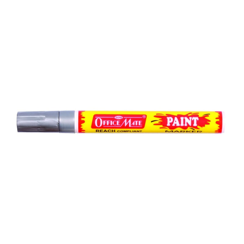 Soni Paint Marker Regular (Bullet Tip) 4.5mm - Silver. Soni Paint Markers feature fast drying, oil-based ink that is formulated to adhere to surfaces, such as metals, plastics, glass, ceramics, and wood. The ink is also water resistant and lightfast, allowing these markers to be used indoors and outdoors. Once the ink has been applied to a surface, it will not fade or wash away.