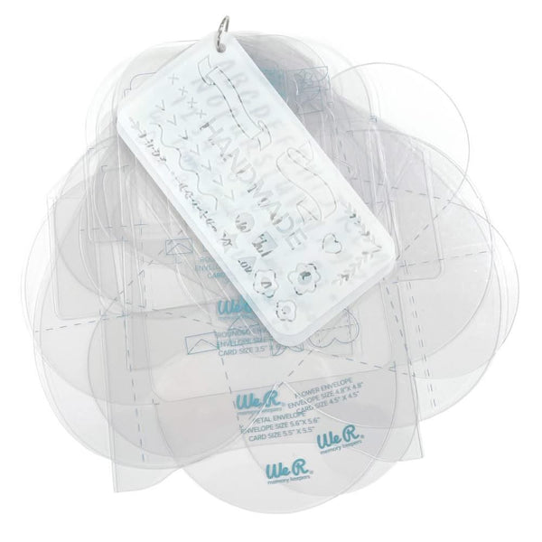 We R Memory Keepers Envelope Tear Guides Specialty. This pack of Envelope Tear Guides includes seven envelope guides along with their coordinating address guides and two alphabet and lettering templates. These guides will help you create envelopes in seven different sizes. The templates can be traced or used to tear thin papers. The alphabet and number template will help you make customised lettering on your envelopes after they are made. There are address templates to align and center addresses on the envelopes. There is a clip ring included for storage and to keep your guides and templates in one spot.