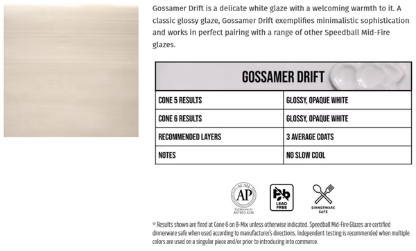 The new Speedball Mid-Fire Glazes are an artist-led project developed in partnership with ceramic artist, Nancy Sowder, highlighting how artists shape Speedball’s development! This line consists of 30 glazes that create magical mottling and reduction like effects fired at Cone 5/6. Get eye-catching results when using each glaze on their own, or try layering colours for even more unique variation! Size: 473ml (16oz).