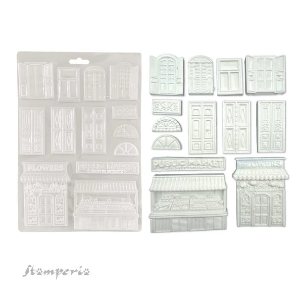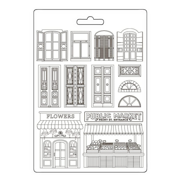 Stamperia Soft Maxi Mould A4 - Art of Travelling - Doors And Window. This texture impression soft mould is transparent and flexible PVC for cold pouring. This flexible mould is suitable for cold-pouring techniques. Ideal for Soap, Ceramic Powder, White Resin and all products to be moulded by pressure or to be cold-cast. Size: A4 (21cm x 29.7cm). Includes one mould, 13 designs.