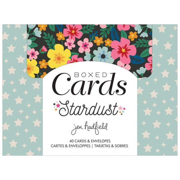 Jen Hadfield Stardust A2 Cards with Envelopes (4.375"X5.75") 40/Box - This package of Boxed Cards is part of the Stardust Collection designed by Jen Hadfield for American Crafts. This box contains 40 cards and 40 white envelopes. There are ten designs, you get four of each. There are flowers, woodgrain designs, stripes, butterflies, hearts, and more. These cards are so easy to grab, write a note, and send on their way. They give you a chance to be creative but not make your own cards. This is a great product to have on hand for those busy times.