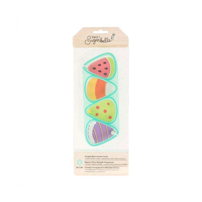 Cut multiple cookies at once with the American Crafts Sweet Sugarbelle Triangle Multi Cookie Cutter. Complete with 1 multi-cookie cutter, an instruction card and 4 templates, this set can be used to create a range of fun designs such as watermelon and pizza-shaped cookies.