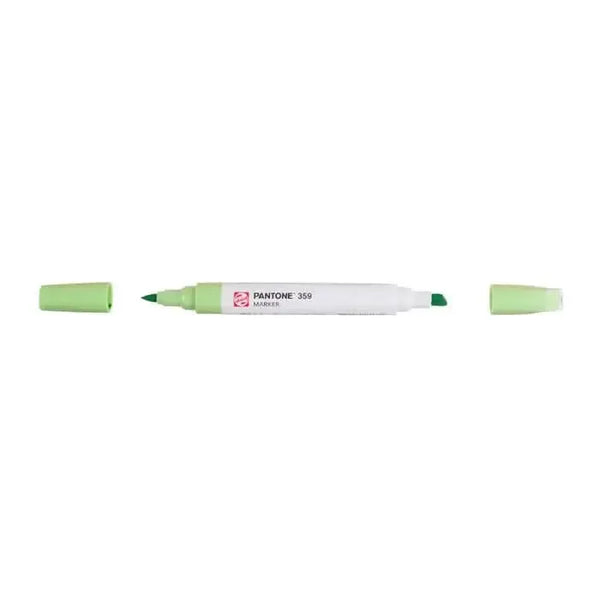 Talens Pantone Marker 359. Sketch, draw and design in Pantone colours with Talens Pantone markers! These high-quality markers contain pigmented, water-based ink in vivid colours based on the Pantone Matching System. Meticulously formulated, adjusted and tested by Talens, co-designed and approved by Pantone. Bring your ideas to life and discover the possibilities! Each marker features two nibs, offering the ultimate flexibility: a brush tip for details and fine lines, and a chisel tip for broad strokes and bold colour blocks. The ink dries quickly and is waterproof when dry, which makes it perfect for layering. No paper damage with repeated layering. Available in 108 colours and various sets (sold separately). Large, refillable reservoir (refill with Talens | Pantone marker inks), sold separately. Store horizontally to guarantee optimal ink flow in both nibs.
