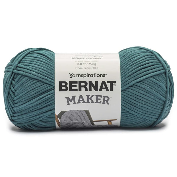 Bernat Bernat Maker Yarn - Teal - Your favorite "Bernat Maker Home Dec" yarn is now as "Bernat Maker". This tubular yarn with pillowy texture has wonderful stitch definition and a soft cotton feel and is available in a vibrant range of trendy shades. Made of a cotton shell with a nylon filling, Bernat Maker is your go-to yarn for your next squishy and soft home decor projects. FEATURES:
