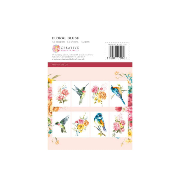 The Paper Tree Toppers Collection - Floral Bush A6. The Paper Tree Toppers Collection is the perfect addition to all your Floral Bush crafting projects! Ideal for stamping and stenciling projects, as well as scapbooking pages, greeting cards, bookmarks,gift cards, mixed media and much more! (sold separately) The A4 Essential Card contains 56 sheets of single sided paper in 8 designs featuring a variety of flowers and birds in a bold warm colour palette. The range also includes a Backing Paper (PTC1251), Die Cut Sheets (PTC1252), Essential Colour Card Collection (PTC1253), and a Insert Collection (PTC1254). 150 gsm.
