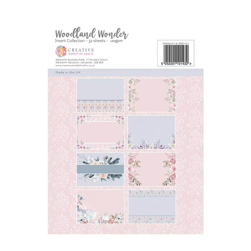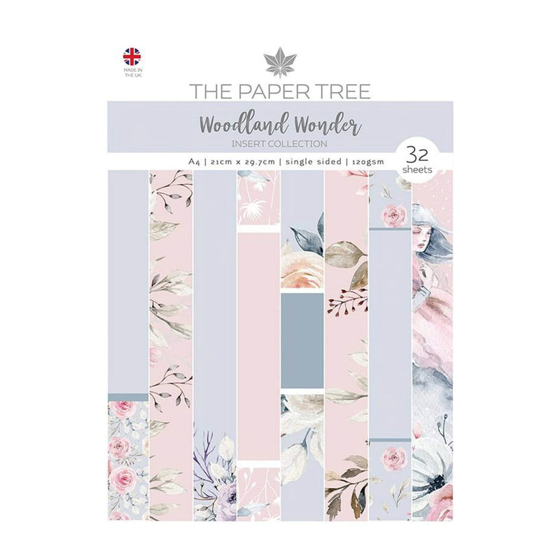 The Paper Tree - Woodland Wonder A4 Insert Collection. The Woodland Wonders from Paper Tree is a selection of papers depicting florals and foliage in delicate colours. The decorative paper prints are small and ideal for card making, scrapbooking and other paper crafts. The pads are all A4 and come in die cut sheets (PT1109), essential coloured card (PT1110) and insert papers (PT1111), each sold separately. A4 Insert Collection includes: 32 sheets of 120 gsm single sided papers. 8 designs 4 of each design.