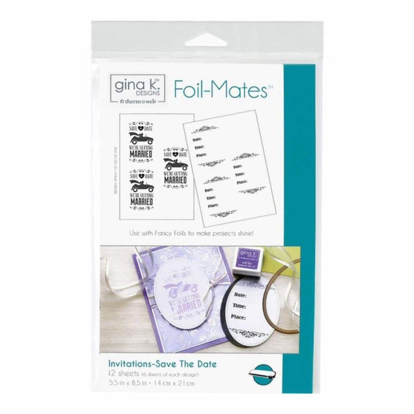 Gina K Designs Foil-Mates Invitations 5.5X8.5 inch 12 pack - Save The Date - These are the perfect addition to your next paper crafting project. This package contains twelve 8-1/2x5-1/2 inch foil mate sentiments in assorted designs.