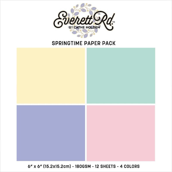 Everett Rd. Springtime Paper Pack 6"X6" Tonal - Get the feeling that Spring is in the air with Cathe Holden's Everette Road Collection of 6" x 6" sheets in solid spring colours. This 12 Sheet Paper Pack includes four different colours, yellow, green, purple and pink. Three sheets in each colourway. Made with 180gsm paper, ensuring that your creations will have a sturdy and durable foundation. Whether you're creating handmade cards, scrapbook pages, or other paper crafts, this paper pack is perfect for adding a touch of spring flair to your projects.