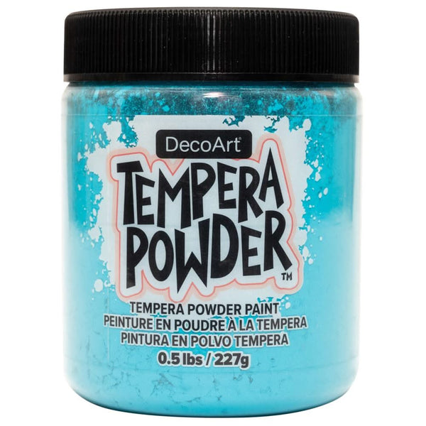 DecoArt Tempera Powder 0.5lb - Turquoise - Say goodbye to wasted paint and hello to endless creativity with our revolutionary powder paint! With our 1:1 mixing ratio, you can make only as much as you need, ensuring that every drop is put to good use. Permanent and long-lasting, our powder paint is permanent when dry, making it the perfect choice for any project on wood, canvas, paper, and even papier-mache. This package contains a half pound jar of tempera powder. Available in a variety of colours, each sold separately. Conforms to ASTM D 4236. Made in USA