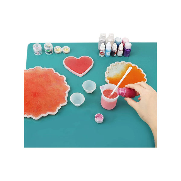 Universal Crafts Extra Large Silicone Mat 50cm x 70cm - Teal. These silicone matts are non-stick, heat resistant, waterproof and easy to wipe clean and store. They will not slip or slide once placed on a surface. They are flexible, thin, durable and long-lasting surface protectors. Use them to shield your surface when painting, gluing, heat embossing, crafting with resin and so much more!