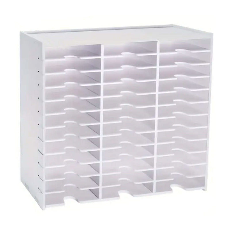 Keep your crafting space neat and organised with the Universal Crafts Ink Pad Storage Rack. Designed to hold up to 36 standard-sized ink pads, this sturdy rack features notched shelves with perfectly sized slots for secure storage and easy access. Ideal for cardmakers, scrapbookers, and stamping enthusiasts, it ensures your inks are always within reach while keeping your workspace clutter-free.