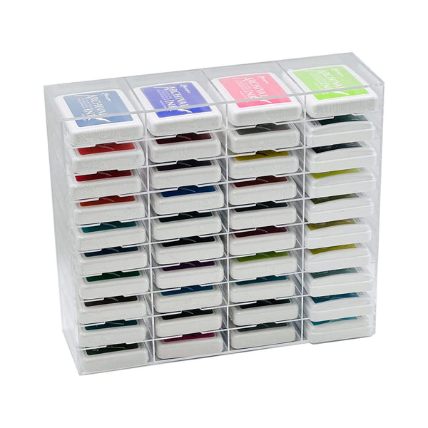 Keep your crafting space tidy and stylish with the Universal Crafts Clear Acrylic Ink Pad Storage Rack. Designed to hold up to 40 standard ink pads, this durable clear acrylic rack features notched shelves with perfectly sized slots for secure storage and quick access. Its transparent design adds a sleek, modern look while helping you easily locate your inks at a glance. Perfect for cardmakers, scrapbookers, and stamping enthusiasts who want to stay organised while creating.