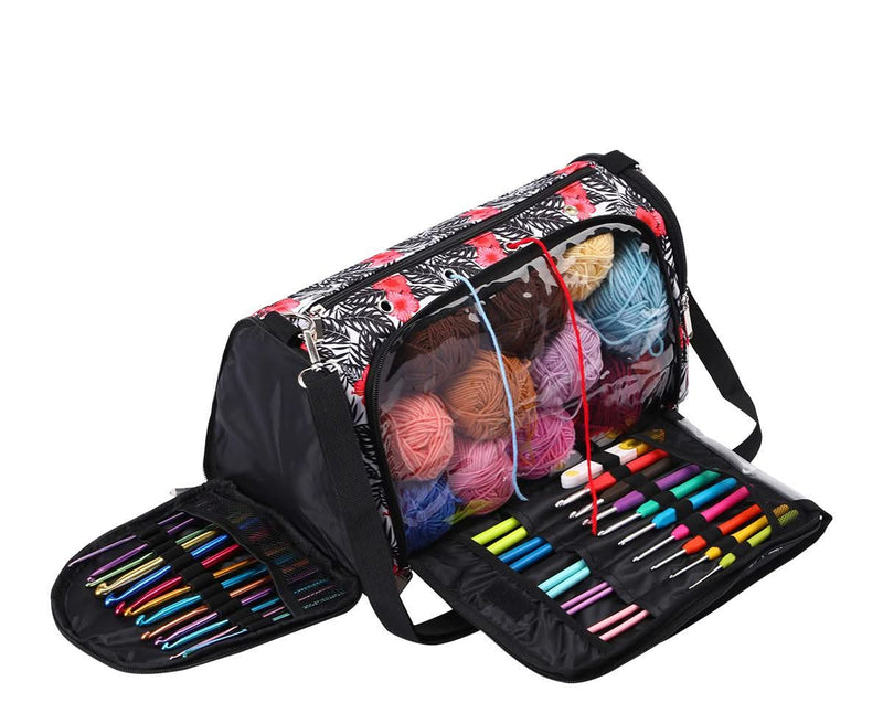 Keep your yarn organised with Universal Crafts Yarn Storage Bag. Featuring a zipper closure, a carry handle, side pocket and Four eyelets in the lid to feed out your yarn. The outside pockets have space for needles (plus hooks) and any of your other knitting bits and pieces. This yarn bag is perfect for keeping your projects going at home or on the go. Available in a range of different colours, each sold separately. Size: 17cm wide x 38cm long x 20cm high. Yarn, Needles & Hooks not included.