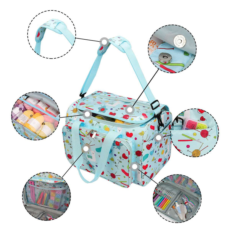 Universal Crafts really have thought of everything when it comes to this knitting storage bag. There are removable compartments, and interior compartments with holes to thread your yarn through so you can keep your skeins separate for colour work; the see-through cover enables you to see what's inside at a glance; the side and front pockets have space for needles (plus hooks) and any of your other knitting bits and pieces. This bag comes with a padded strap which means you can comfortably carry it on your shoulder or forearm. Size: 38cm long x 26cm tall x 29.5cm wide. Yarn, Needles & Hooks not included.