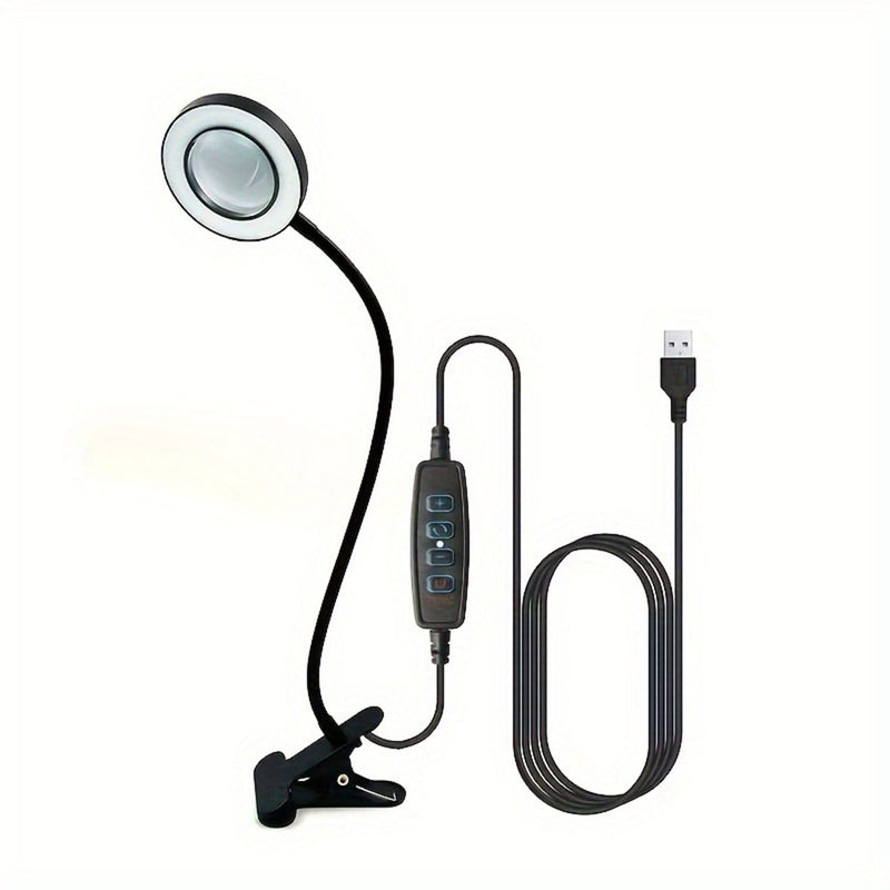 Universal Crafts LED Magnifying Lamp - Black. Your perfect companion for detailed work. This lamp magnifies 5x and features an LED light with three colour modes. Its 38cm adjustable neck and strong clamp ensure stability on any crafting surface. Conveniently powered by a USB plug, it makes seeing small instructions and details easier on the eyes.