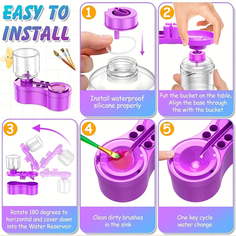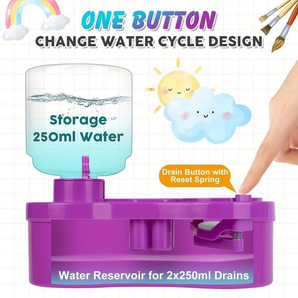 Universal Crafts Paint Brush Cleaner Rinse Cup - Green. This all-in-one Paint Brush Cleaner Rinse Cup is designed for artists, students, and teachers. You can recycle dirty water at the touch of a button and let clean water flow out for reuse. The paintbrush cleaner rinse cup is lightweight, durable and easy to carry. Available in a range of different colours, all sold separately. Paintbrush is not included.