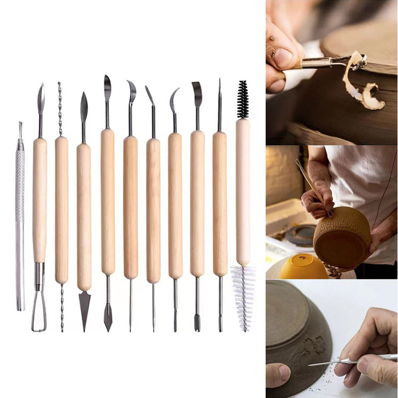 Each piece is designed for precision and comfort, with a mix of durable wooden, metal, and silicone-tipped tools ideal for both beginners and professionals. The set comes in a convenient roll-up storage pouch for easy organisation and portability.