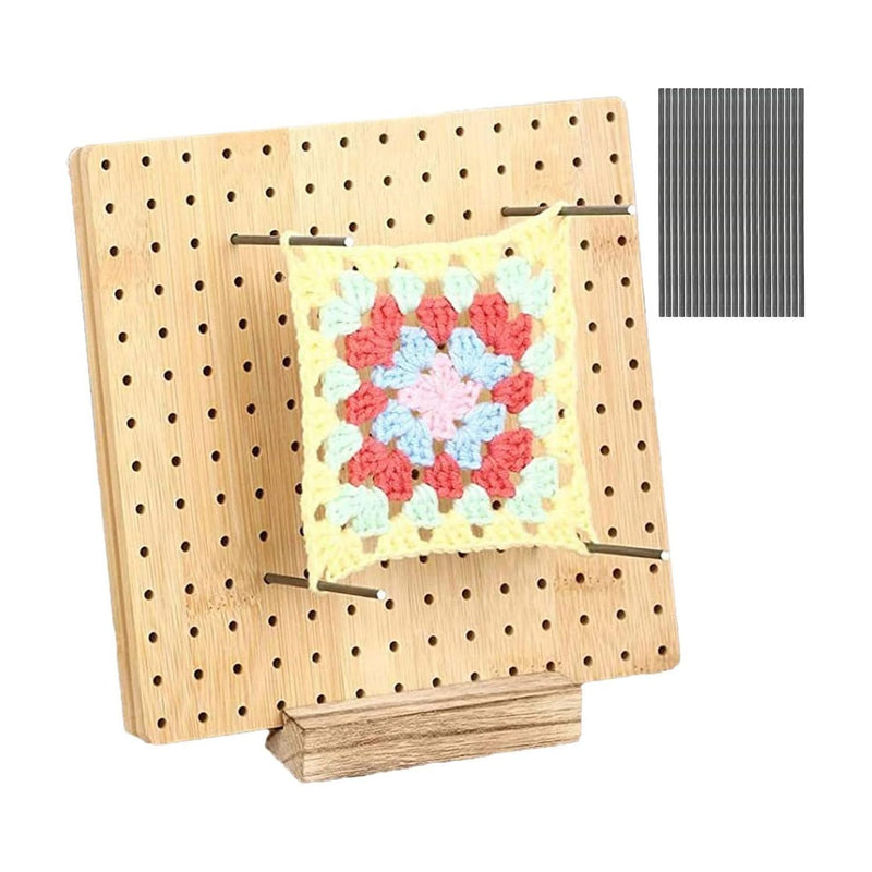 Includes: 1x bamboo square blocking board, 1x wooden stand, 20x 10cm metal rods