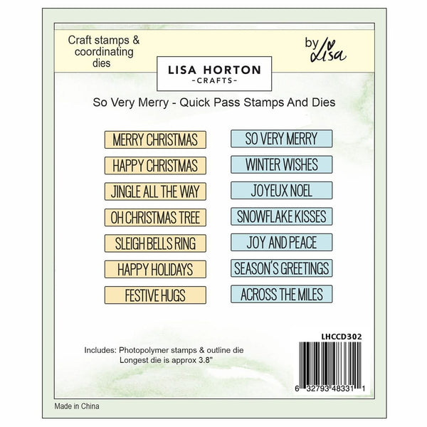 Add charm and cheer to your Christmas crafts with the Lisa Horton Crafts So Very Merry Clear Stamps and Dies Set – Quick Pass. Designed for fast and flawless festive crafting, this premium set includes a collection of high-quality photopolymer stamps paired with a coordinating sentiment die that cuts all greetings in one easy pass—perfect for holiday card making, gift tags, scrapbooking, and DIY Christmas decorations.