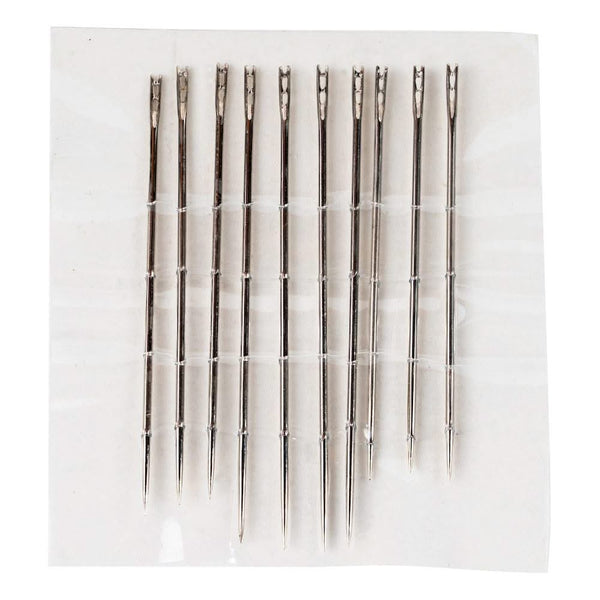 SINGER Self-Threading Hand Needles W/Magnetic Storage Assorted 10/Pkg - The SINGER Assorted Self Threading Needles are for sewers looking for an easier way to thread a needle. The hand sewing needles are made of rust-resistant nickel-plated steel and feature a slit on the side of the eye. This design makes it easy to thread, just slip the thread into the groove at the top of the needle. The gold-plated eye makes the needle easier to thread and is corrosion resistant. Keep the assorted hand needles all together on the decorative magnet for easy retrieval. This package contains 10 self-threading needles with a magnetic storage tin.