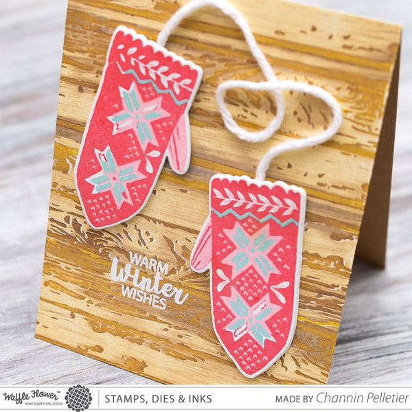 Waffle Flower Crafts Clear Stamp 4"x 6" - Warm Hands. Your Christmas cards will be everything this year when you create them with the Warm Hands Clear Photopolymer Stamp Set by Waffle Flower Crafts. Included in the set are 8 clear stamps. The stamps can be used with your favourite inks, and an acrylic block (each sold separately). The stamps come on a 4"x 6" (10cm x15cm) storage sheet and are made in the USA.