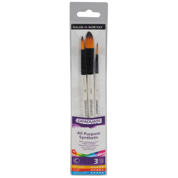 Daler-Rowney Graduate All Purpose Synthetic Brush Set 4/Pkg Watercolour Short Handle - The Daler-Rowney Graduate paint brushes are designed to perfectly meet the needs of students and hobbyists with an excellent value-for-money offer. This package contains 4 all purpose synthetic bristle, short handle paint brushes.
