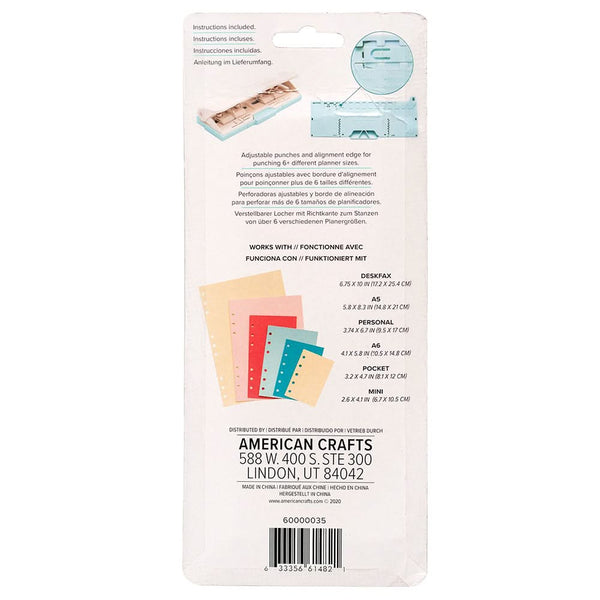We R Memory Keepers Planner 6 Hole Adjustable Punch. The punch comes with a guide which allows you to punch perfect pages for A3, A4, A5, B4, B5 and personal size inserts. Punch up to 8 sheets at a time. Adjustable punches & alignment edge for punching 6+ different planner sizes.