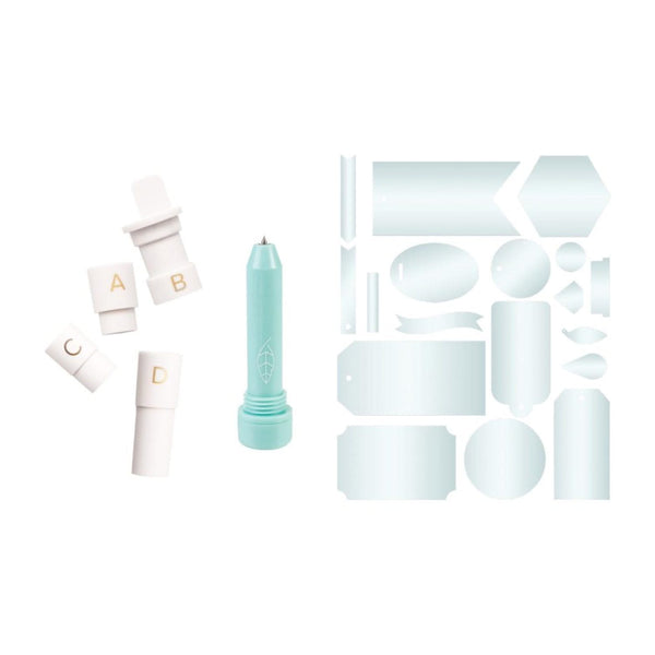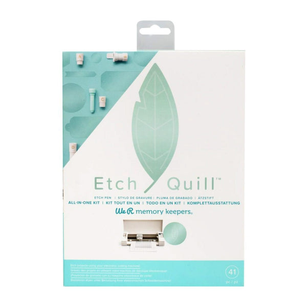 We R Memory Keepers Etch Quill, Starter Kit. Etch using your electronic cutting machine! Kit Includes 1 Silhouette Adapter, 1 Brother Adapter, 1 Cricut Adapter, 1 Sizzix Adapter, 1 Etching Pen and 36 Etching Plastic Shapes.